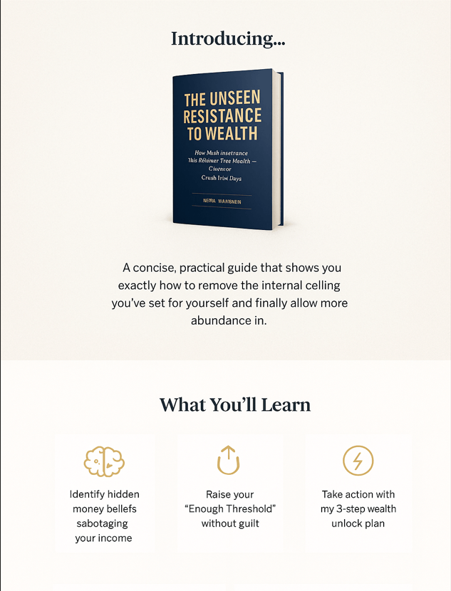 I’ve done therapy, coaching, and attended high-ticket seminars, but none of them got to the root of my money resistance as quickly as this short book did. It doesn’t dance around the truth, and that’s exactly why it works.”